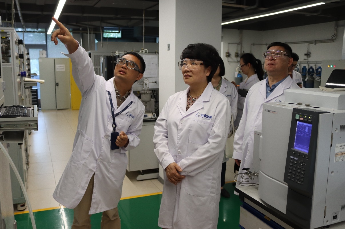 马红英一行参观了颗粒验证平台、储能及电化学平台、分析测试平台及各项研发实验室,大致了解了平台的实验场地、仪器设备、研究成果等情况。