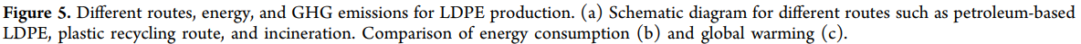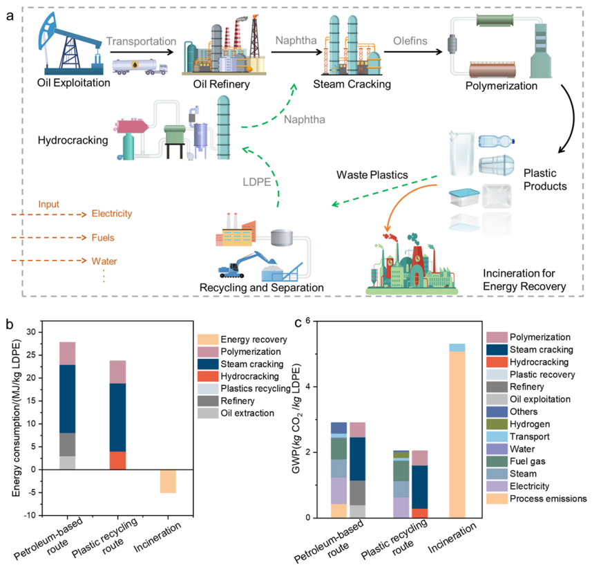 对塑料工艺流程进行了全生命周期评价(Life Cycle Assessment, LCA),分析了原料获取、生产、使用和回收等不同过程的碳足迹,并核算了从原料到LDPE消耗各个阶段的碳排放,塑料的循环使用可节约15%的能量,减少30%的温室气体排放。
