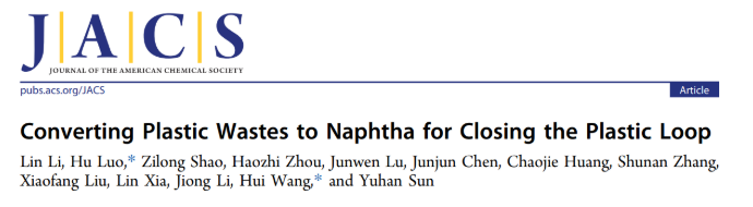近日,中国科学院上海高等研究院王慧研究员和罗虎高级工程师研发团队,在废塑料升级提质利用取得重要进展,相关研究成果以 “Converting Plastic Wastes to Naphtha for Closing the Plastic Loop”为题发表在顶级期刊Journal of the American Chemical Society。低碳平台部分参与并完成了相关理论计算和碳排放工作。